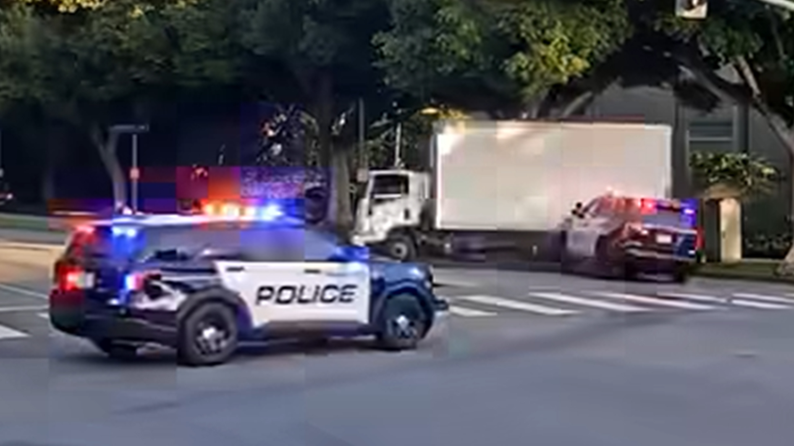The video, pulled from three conveniently positioned security cameras at an intersection, shows the truck driver making a left turn through a red light and even having the presence of mind to switch on the turn signals. A black-and-white Chevrolet police cruiser can then be seen driving into the rear quarter of the truck as it makes the left turn.